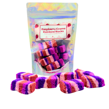 Scented in the sweet, indulgent aroma of raspberry crème, these chunky, colorful bath rocks fizz...
