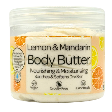 Introducing our Lemon and Mandarin Luxury Body Butter, a refreshing skincare experience that energizes the...