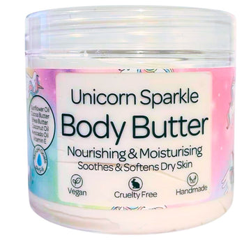 Introducing our Unicorn Sparkle Luxury Body Butter, a whimsical and enchanting treat for your skin...